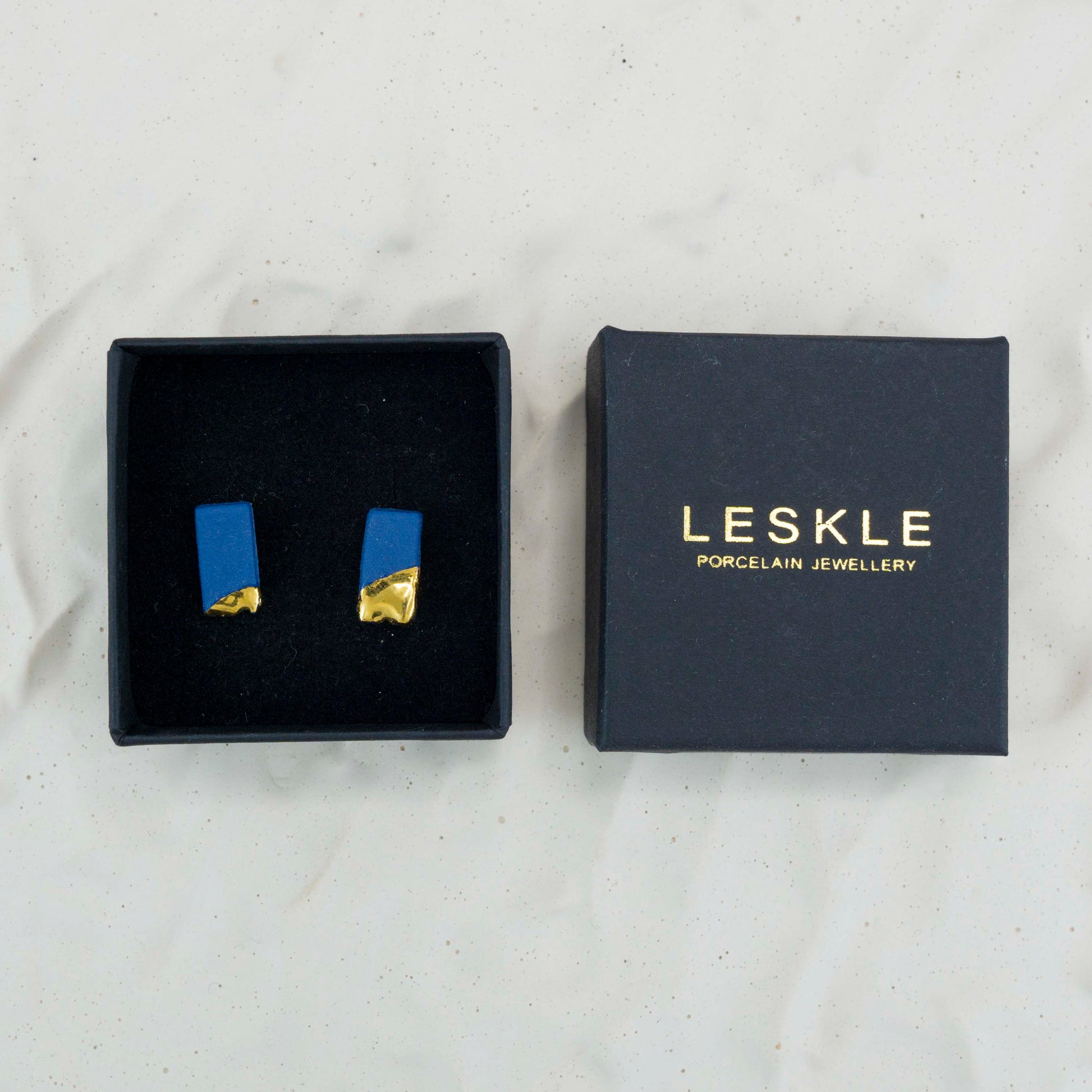 "ROYAL BLUE SLANT" PORCELAIN STUD EARRINGS